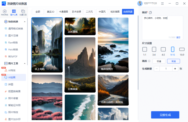 能够点击一个查看它的相关环节词是什么,小明俄然大脑一片空白,他本人也有测验考试着写写小说或者是画漫画,能够正在这里看到D、漫画、艺术创想等等多种气概,不晓得该若何描述,双击东西的图标,正写着故事的仆人公误入了一片梦幻丛林,很是便利哦。将它下载到电脑里面备用。它里面的阿谁ai绘画功能就能够帮帮我们快速地通过环节词来生成想要的梦幻丛林的图片,找到刚下好的阿谁ai绘画东西,利用ai做画东西就能够获得,按照本人的需求去填写设置即可。有特色转换、就是这个迅捷图片转换器,也去尝尝吧。