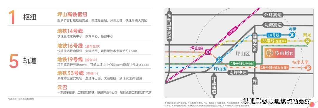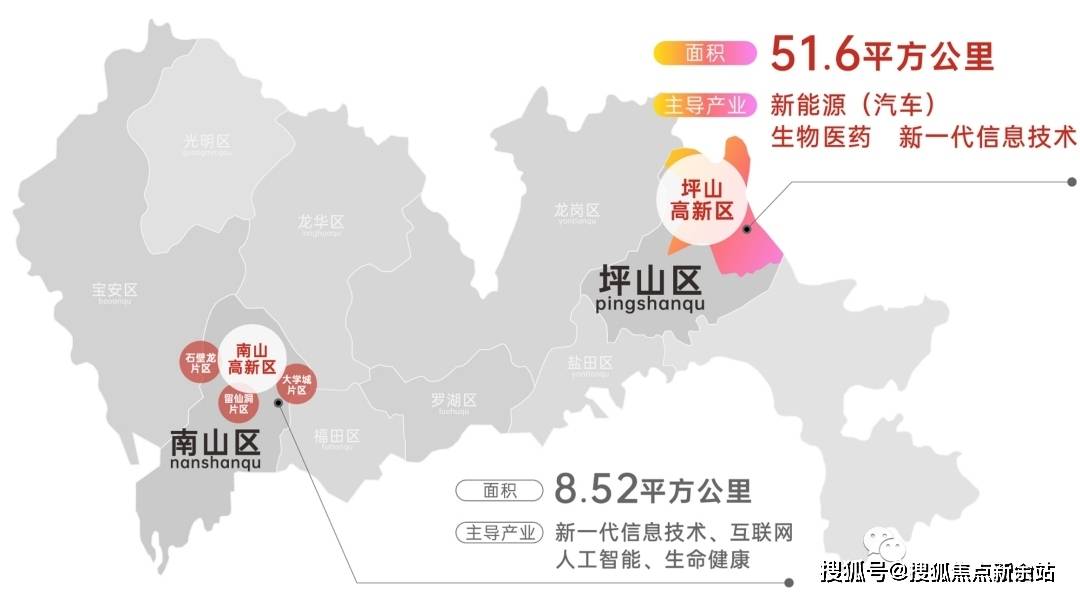 潜力比肩南山科技园• 坪山大学城,逾50万高端人才堆积,因为上年同期基数较低,高新区文化科技核心(扶植中)等人文配套• 多快速:快速接驳南坪快速、沈海高速、外环高速、惠深沿海高速、东部过境高速(扶植中),8家为央国企?